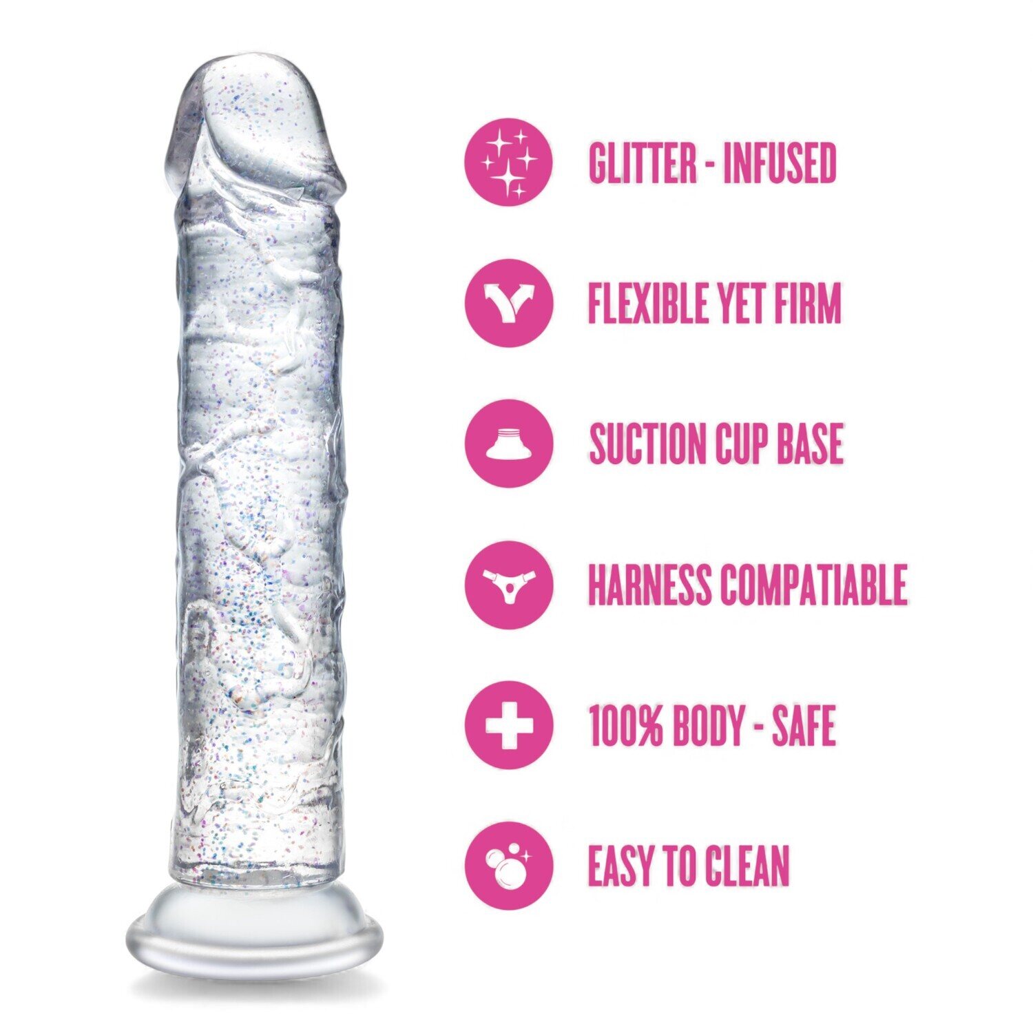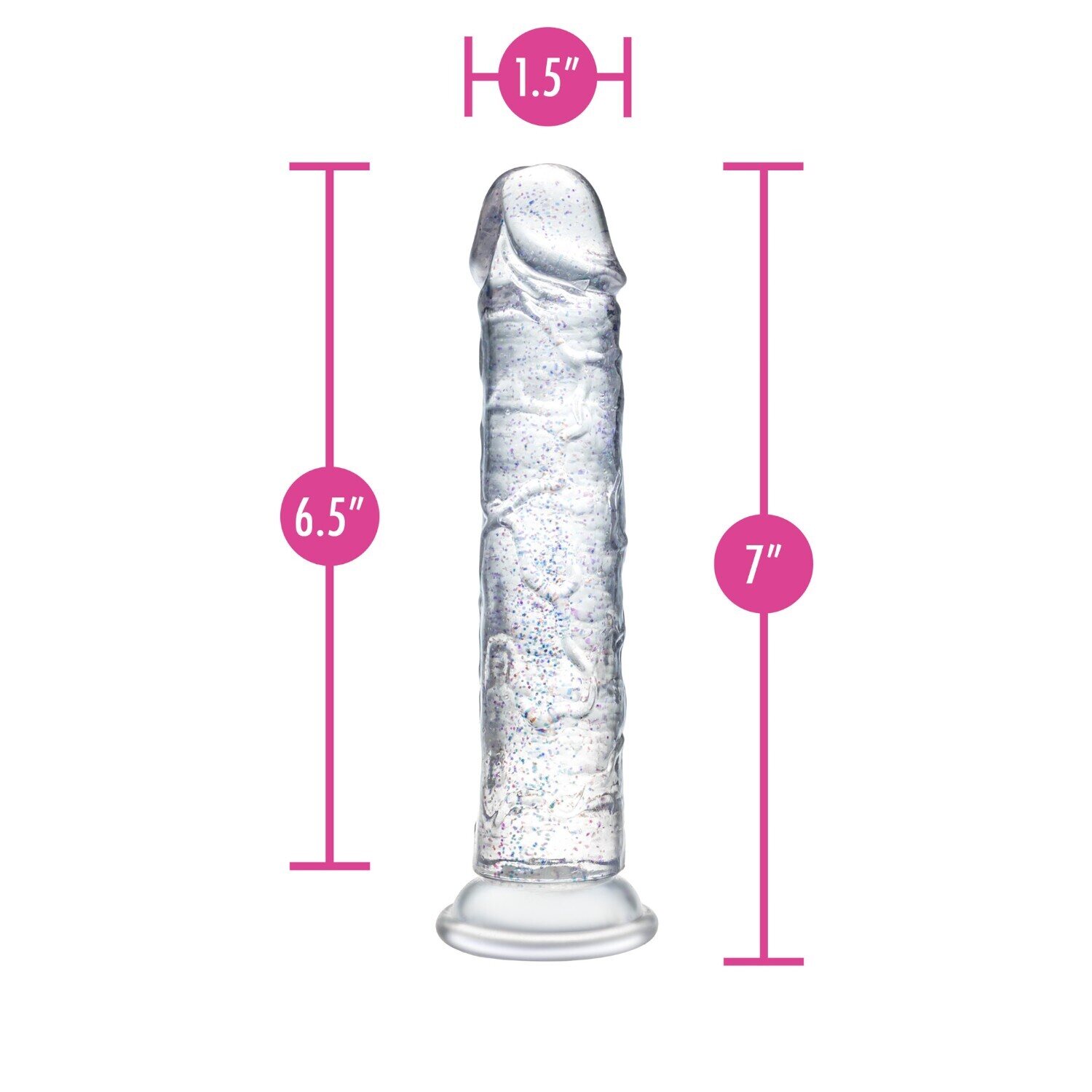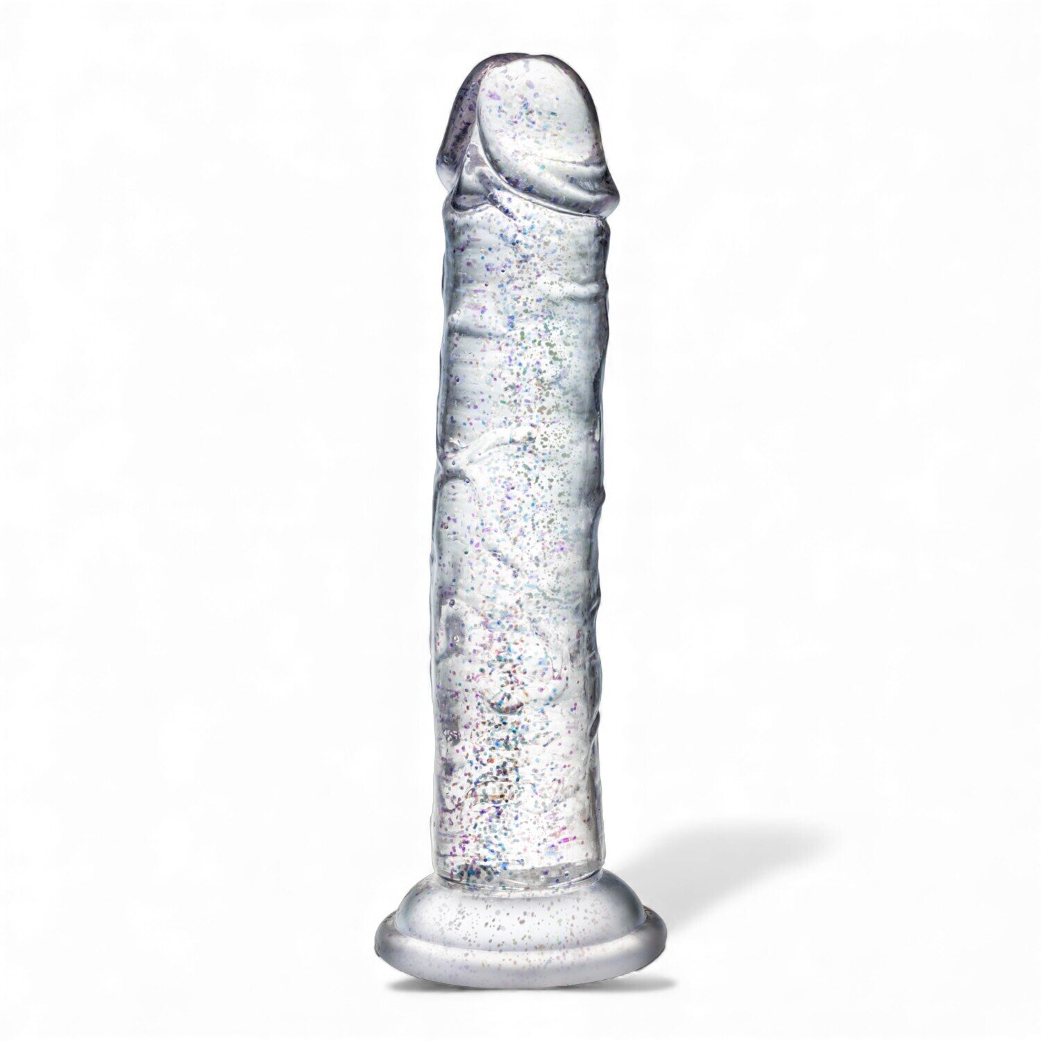 Crystal Glamor Luxe on dildo, joka tekee nautinnosta kauniimpaa, intensiivisempää ja rohkeammin omannäköistäsi. Sen kristallinkirkas glitter-pinta kimaltaa jokaisessa valossa, ja joustavan jämäkkä tuntuma tuo keholle juuri oikean määrän täyteläisyyttä. Kokonsa puolesta se on täydellinen valinta niin ensimmäiseksi dildoksi kuin monipuoliseen leikkiin kokeneellekin käyttäjälle.