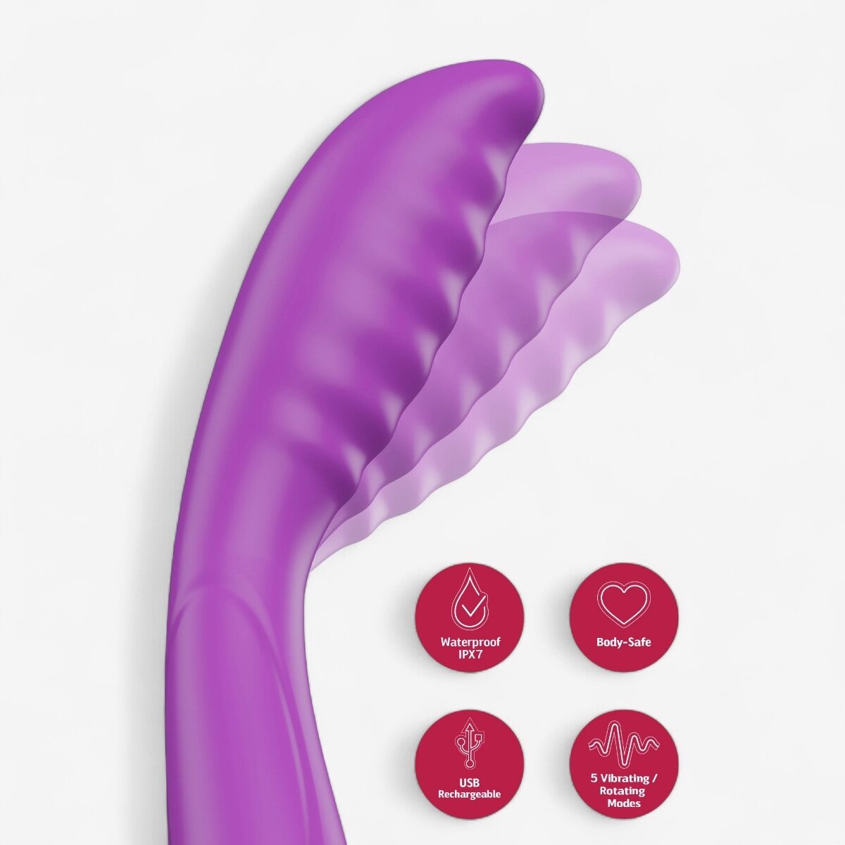 • G-spot tapping head: grooved tip delivers rhythmic finger-like taps with a generous angle.