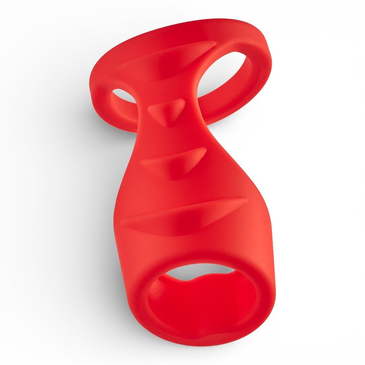 Kolme erikokoista rengasta mahdollistavat eri tiukkuusasteet. Dual-rengas tuo lisävakautta. Teksturoitu sleeve lisää aistillisuutta molemmille.