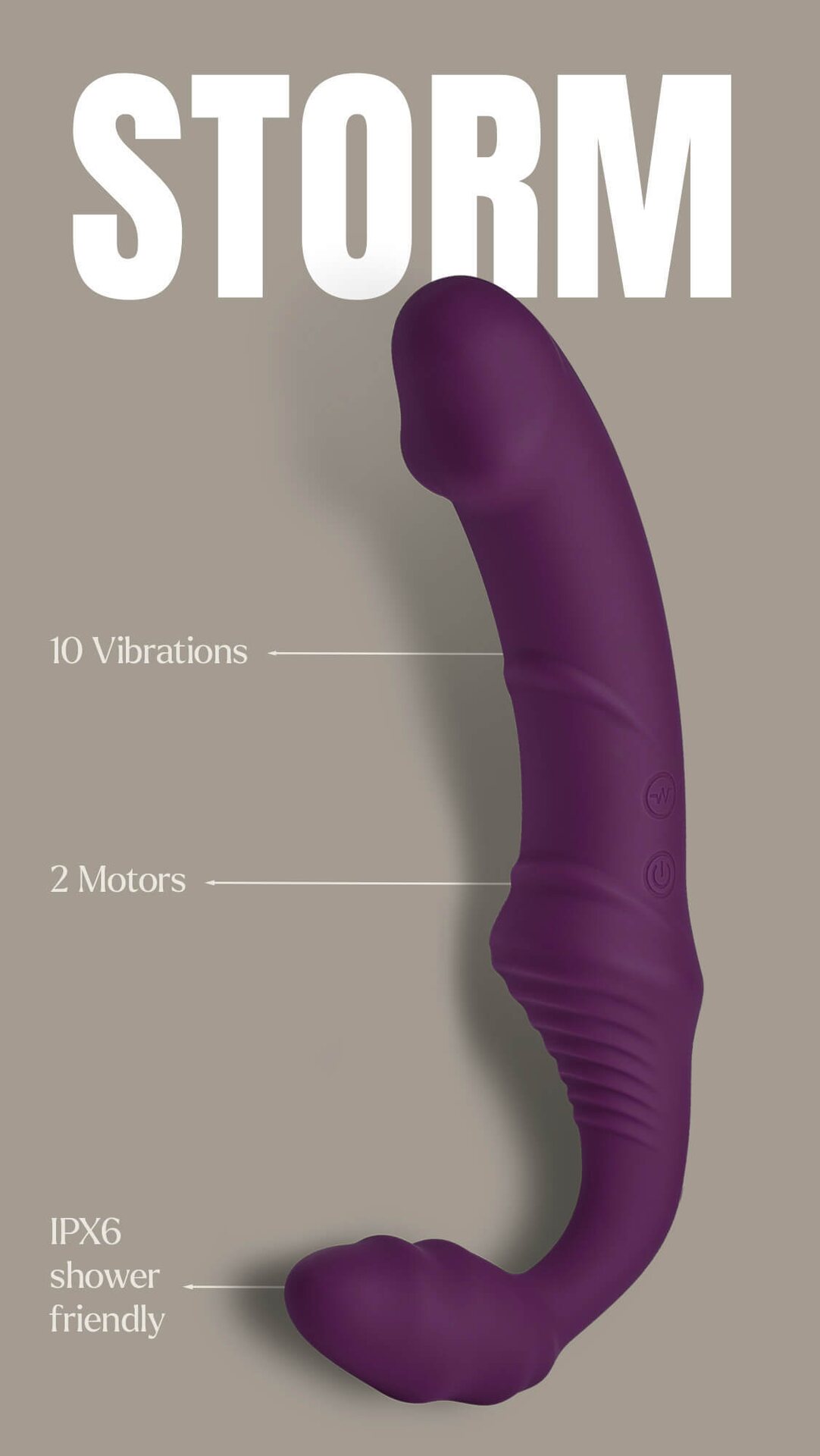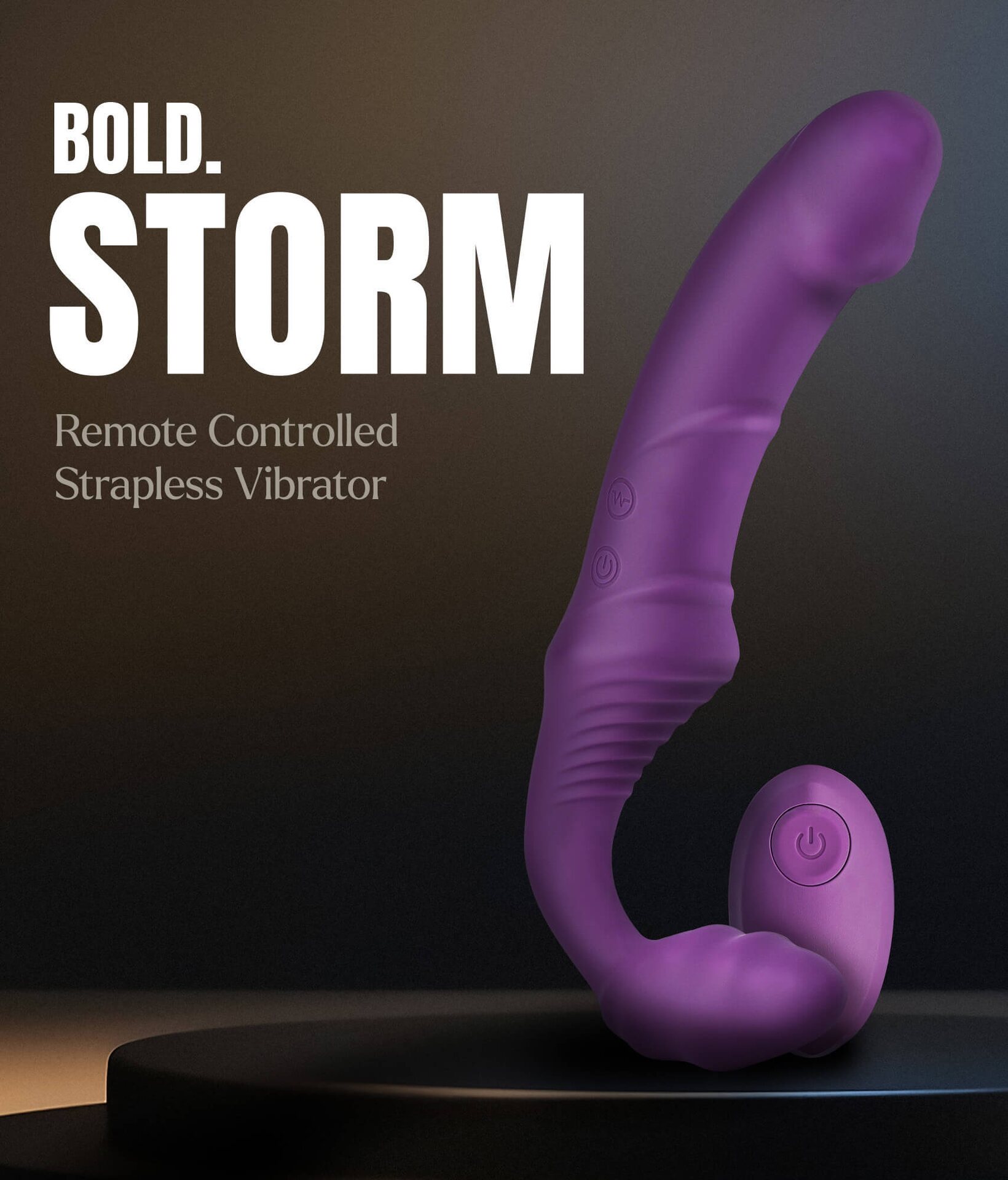 Bold Storm on remmitön, kehon omilla liikkeillä toimiva parivibraattori, jossa on kaksi moottoria, 10 värinätilaa ja mukana kaukosäädin, joka vapauttaa kädet ja lisää leikillisyyttä.
