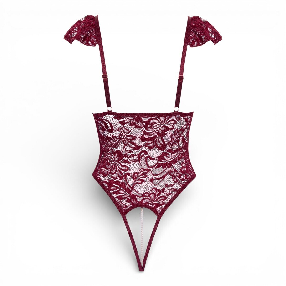 Se on tehty hetkiin, jolloin haluat tuntea itsesi vietteleväksi – ilman roolia, ilman kiirettä. Pehmeä pitsi, avoin muotoilu ja ihoa vasten liikkuvat helmet luovat tunteen, joka ei jää vain katseeseen.