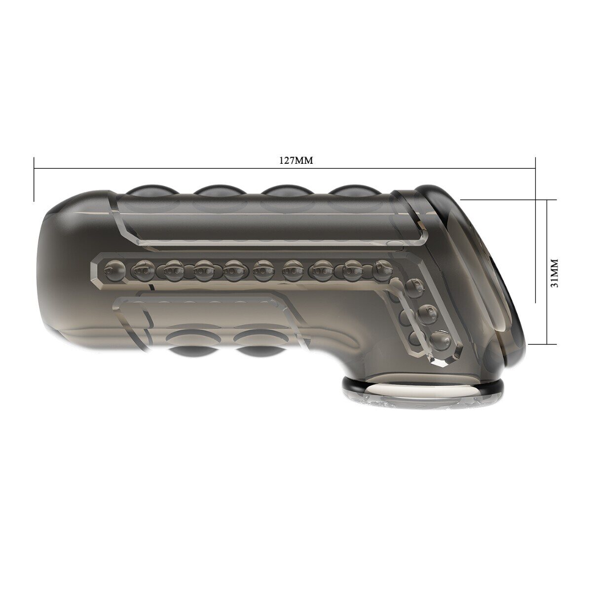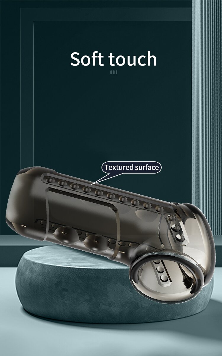 Pehmeä ja superelastinen TPR-materiaali mukautuu kehoosi luonnollisesti. Teksturoitu pinta lisää stimulaatiota jokaisella liikkeellä, samalla kun integroitu cock ring tukee erektiota ja auttaa pitämään nautinnon hallinnassa pidempään.