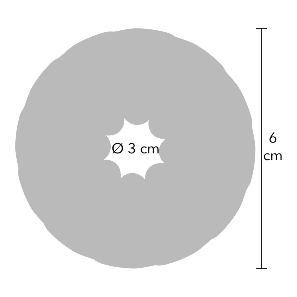 • Koko: Ulkohalkaisija n. 6 cm • Sisäaukko n. Ø 3 cm