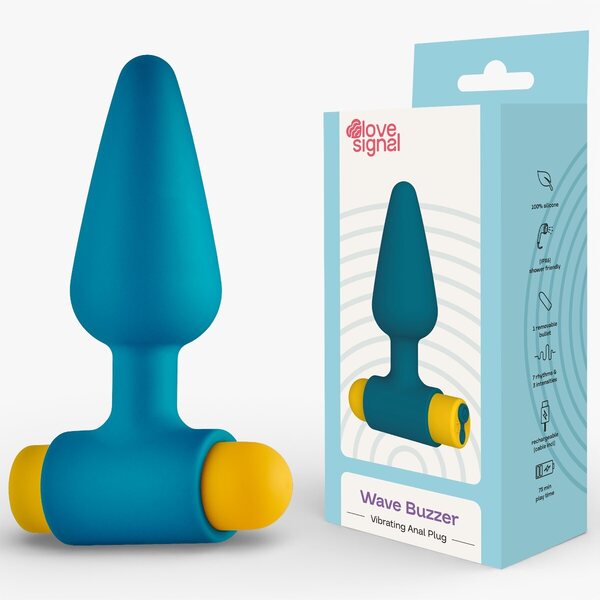 Love Signal Wave Buzzer – Kompakti Ladattava Anaalivibraattori (IPX6) on suunniteltu tutkimiseen, ei suorittamiseen. Sen muoto on sileä ja luonnollisesti kapeneva. Se asettuu kehoon rauhallisesti ja pysyy paikallaan mukavasti.