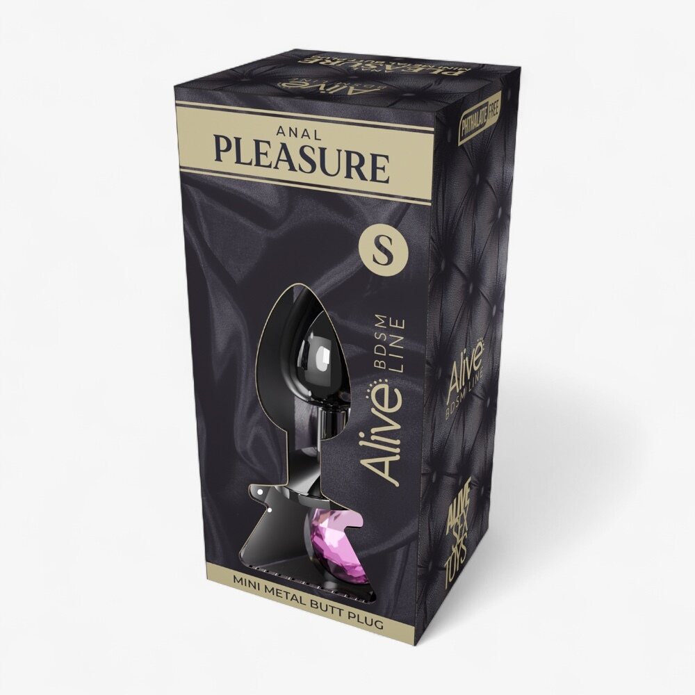 Sileä metallitappi, joka tuntuu painavalta juuri sopivalla tavalla, liukuu pehmeästi oikean liukuvoiteen kanssa ja pysyy paikallaan kapean kaulansa ansiosta. Aloittelijalle ihanteellinen S-koko (pituus 7 cm, halkaisija 2,8 cm) ja tyylikäs pinkki jalokivi tekevät hetkestä sekä nautinnollisen että visuaalisesti kauniin. Tämä on helppo, turvallinen ja huolitellun tuntuinen tapa tuoda metallinen anaalitappi osaksi omaa nautintorutiinia.